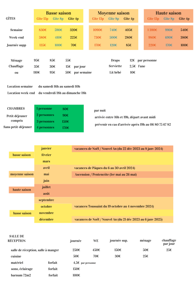 Tarifs 2023-2024